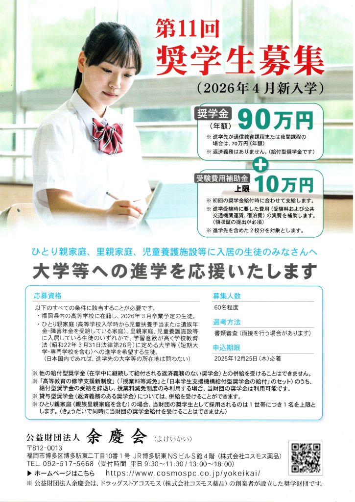余慶会の募集案内です。拡充されています。母子寡婦福祉会の会員の方は、お住まいの母子会におたずねください。
